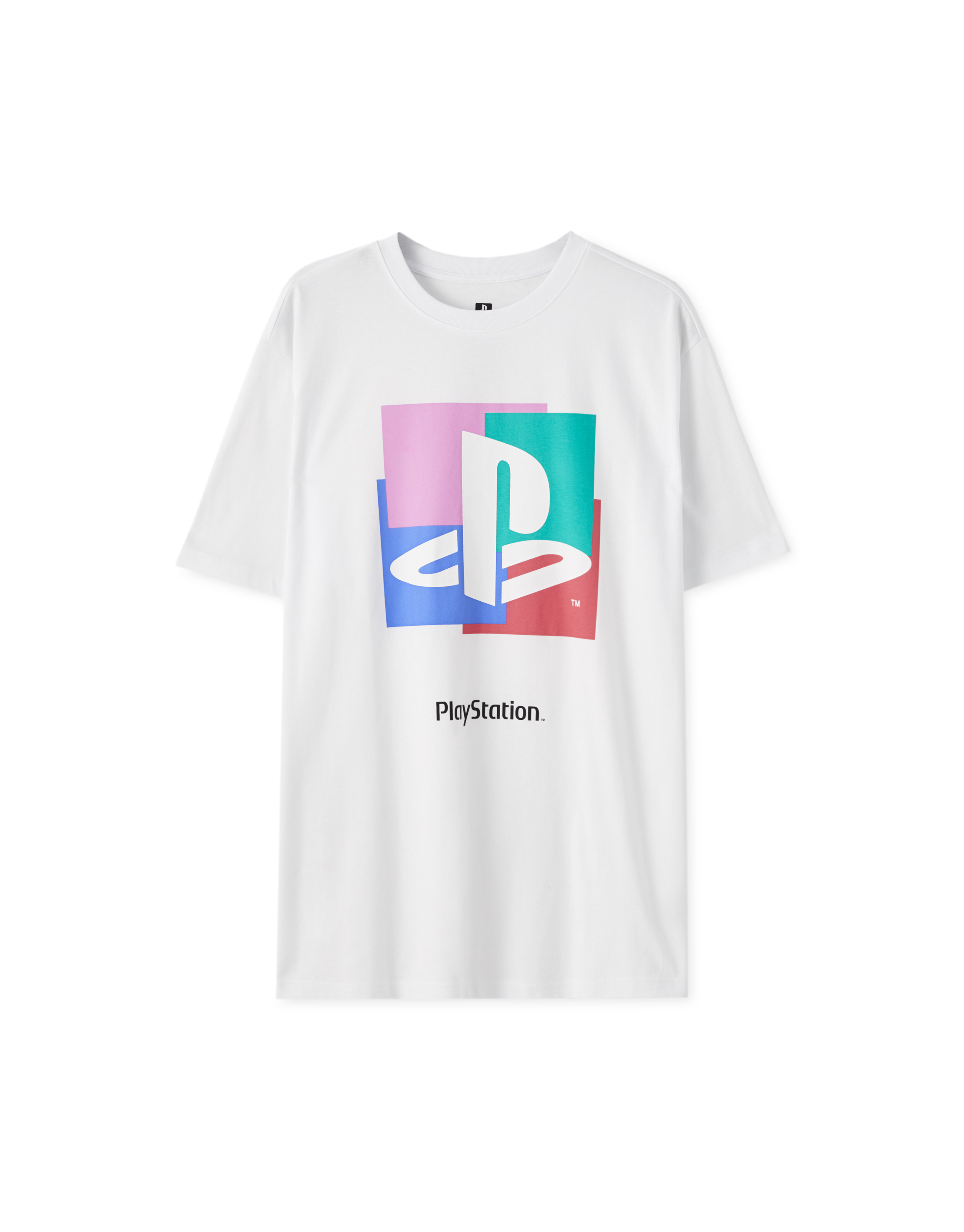 V-neck or crew neckline. PlayStation logo and controller graphic Crew neck Short raglan sleeve in contrast colours Foil-effect detail. Hoodie 22 white Playstation t-shirt 8 tracksuit trousers 16.